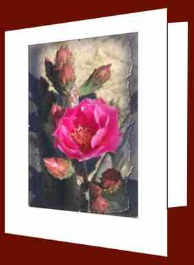 Most of our images are available as little 6x8 canvases. Some are available as tiny 4x4 miniatures that you may hang up immediately, or use to decorate a table. In addition, we continue to experiment with other sizes and other forms of art. And some images are created directly on decorative wood. You can see them all at our next show--or call and ask.