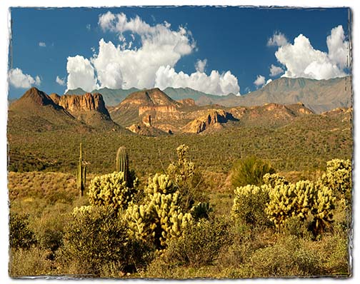 Desert View©. Wait! Didn’t you see this scene in an old western movie? All it needs is a stage coach or a pony express rider. Here you are facing north from Lost Dutchman State Park across the Superstition mountains. The Dutchman ‘s gold was never found, but it doesn’t hurt to take a good look.