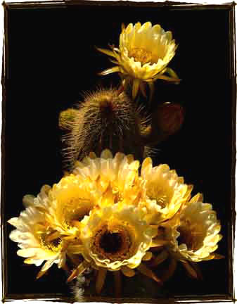 Can you hug a cactus? Many of them seem cute, almost huggable. And some even have cute names, like "teddy bear cholla", or "queen of the night". Their blossoms are often magnificent, with a riot of colors and shapes varying from the incredibly ornate to the simply improbable. We feature some of them here, together with agaves, aloes, yuccas and other pointed plants. We recommend that you hug just the art. Both you and the prickly things will be happier. Digitography is made for flowers and plants. Take a look. Be sure and check our other galleries as well; they overlap a little.