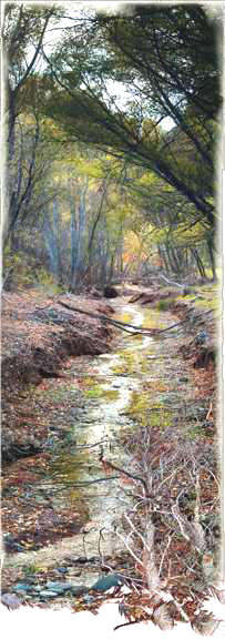 Forest Stream in Fall© is a little stream in the southern part of Arizona’s Galiuro Mountains. This area is protected by the Nature Conservancy as one of the world’s most lovely (but vanishing) habitats. Look closely and imagine the many wonderful varieties of animal and plant life.